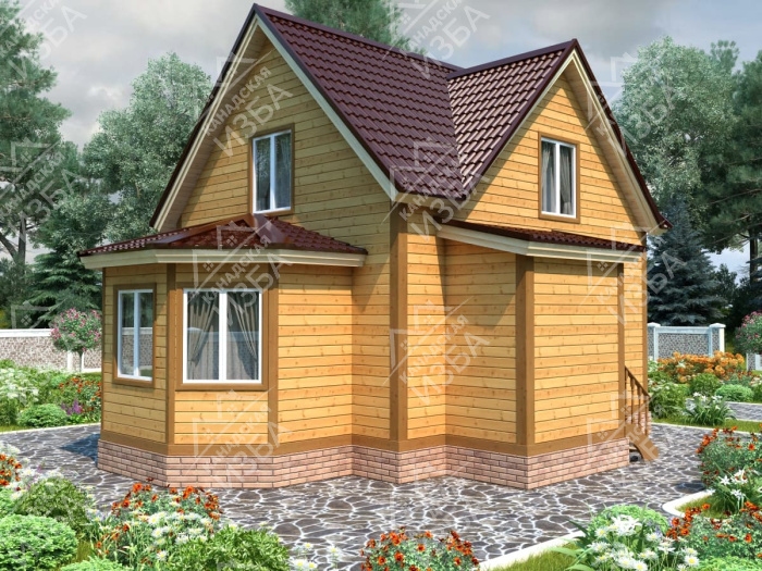 Дом компактный и привлекательный. Его размер 9x9.5 метров. Состоит из двух этажей общей площадью 98.5 м². Внешняя отделка выполнена из вагонки. Пристроенная к дому лесенка ведёт в прихожую, окна деревянные. Просторная пристройка с двумя окнами на первом этаже спроектирована как детская комната.
