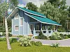- Первой в глаза бросается крыша. Она асимметричная. Один из скатов состоит из двух фрагментов, которые образуют волну. Крыша имеет большой угол наклона, поэтому на ней не будет скапливаться снег. Еще одна изюминка проекта – роскошная крытая веранда. На нее вход с крыльца. Площадь веранды 24,1 м2, она расположена вдоль одной из сторон здания. В ней есть ограждения из бруса. Здесь можно обустроить просторную зону для отдыха летом.