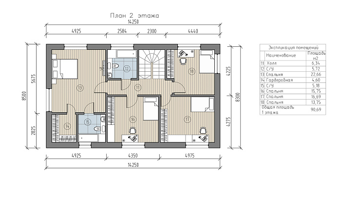 | Каркас внешних стен - 35х140мм камерной сушки, с шагом 580мм | |||