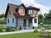 Дом «Эталон» – верх совершенства проектирования каркасных домов. Коттедж имеет трапециевидную архитектурную форму за счет того, что один из углов, находящихся слева от входной зоны, слегка скошен. Размеры дома составляют 7х8 м, что позволяет его легко разместить даже на небольшом загородном участке. При этом общая площадь коттеджа – 100 м2, что значительно больше, чем у многих типовых проектов.Кровля дома сложная, со множеством деталей и с несколькими слуховыми окнами. Благодаря такому проектировочному решению внешний вид постройки кажется более интересным, и, помимо того, визуально увеличивается общая площадь.