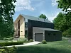 Дом «Тоттенхэм» для круглогодичного проживания с оригинальным фасадом и пристройкой – выполняет функции гаража, мастерской и бойлерной. Вынесенный блок технических помещений сообщается с жилым пространством через дверь. Здание имеет два отдельных входа, к которым примыкает терраса. Предусмотрена возможность выделения «дневной» и «ночной» зоны на 1 и 2 этаже соответственно.