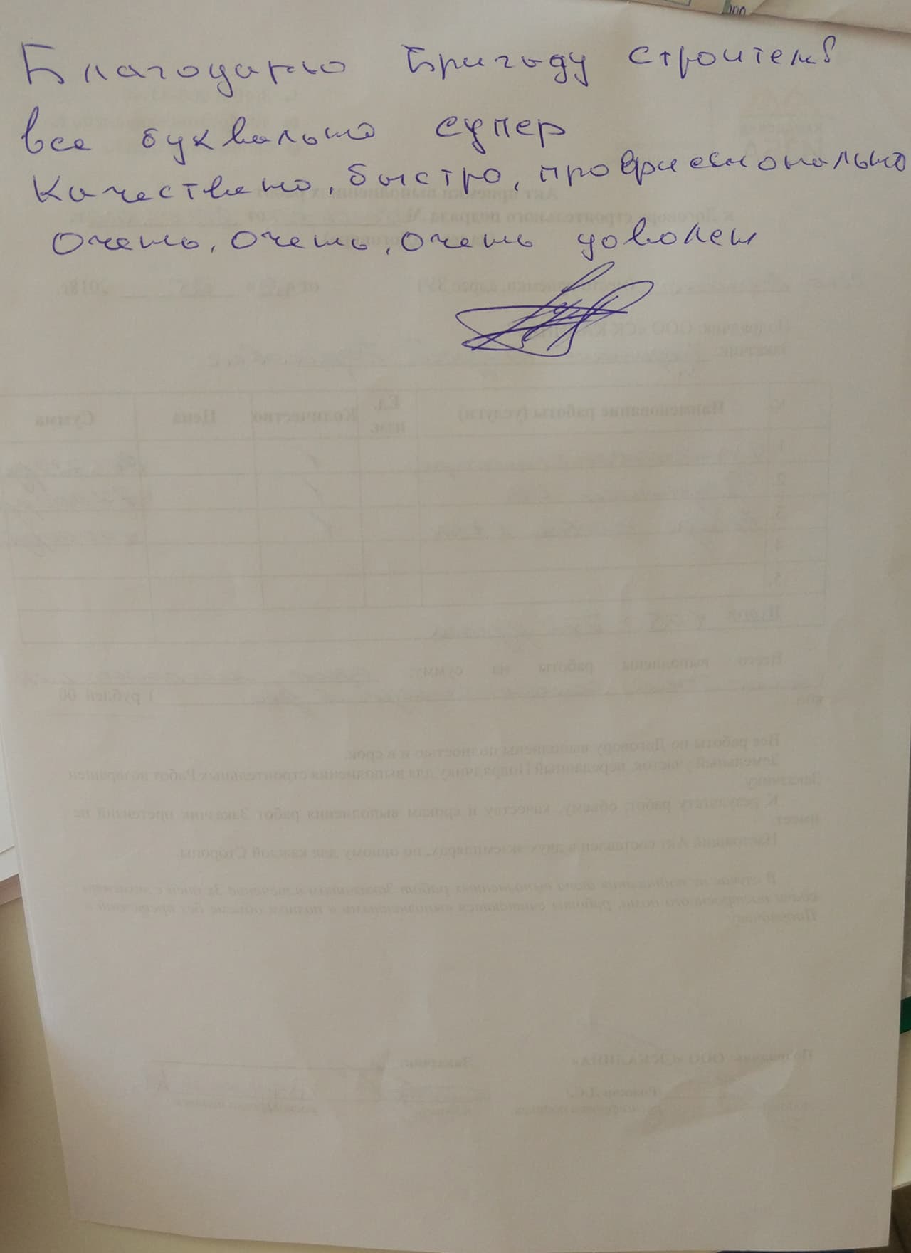Благодарю бригаду строителей. Все буквально супер качественно, быстро профессионально.
