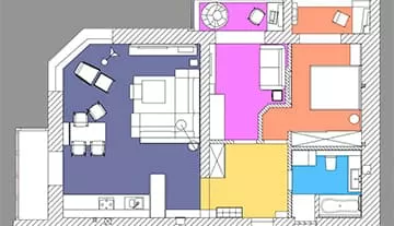 увидеть общую планировку: размещение в доме дверей, комнат, балконов, лестницы, окон и тд.