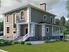 - Второй этаж – зона отдыха, включает четыре спальни с двумя санузлами и гардеробной, например в каркасных домах 6 на 6. Вход в дом с крыльца на первом этаже, минуя цоколь.