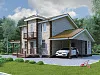 Двухэтажный дом «Джанкой» предназначен для большой семьи. Планировка предусматривает просторную террасу и навес для автомобиля. На каждом этаже имеется отдельный санузел.