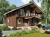 Дом насыщенного оттенка выглядит благородно (сруб из клееного бруса). Он свидетельствует о хорошем чувстве стиля его владельца. Помимо изысканного дизайна, постройка имеет еще и продуманную планировку, позволяющую с комфортом проживать в доме даже большой семье.