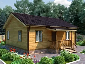 Вход в дом через просторную террасу (3,5х5,5) по лестнице без перил. Из прихожей (2х2,5) двери ведут в гостиную (29 кв.м.), совмещенную с кухней (2,5х4). По бокам от лестницы, ведущей на второй этаж, находятся гостевая спальня (3х3,5) и санузел (3х3).