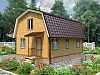 Дом с мансардным помещением может быть дополнен мобильной баней, и имеет традиционную прямоугольную форму и удобную планировку внутренних помещений. Здесь располагается просторный холл, гостиная, спальня, кухня и санузел, не говоря уже о просторной крытой веранде, выполненной в форме крыльца.