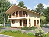 Экстерьер деревянного дома смотрится красиво за счет большого балкона, расположенного на втором этаже, а также окошек с небольшими скосами. Внутри имеется все необходимое для полноценного проживания, включая 4 спальни, гардеробную, холл, гостиную, кухню и сантехнический узел. Из достоинств такого коттеджа выделяют: