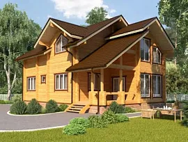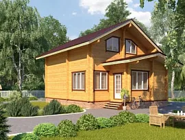 Коттедж Молочный – это просторный одноэтажный особняк, построенный из бревна оцилиндрованного типа (соснового бруса кругляка). Двускатная кровля имеет небольшой угол наклона, что подчеркивает площадь строения в 81,3 м2. Несмотря на относительно небольшие размеры 8,5x10,5 м, коттедж смотрится очень добротно. Можно построить дачный дом, который будет гармонично вписываясь в ландшафтный дизайн любого участка.