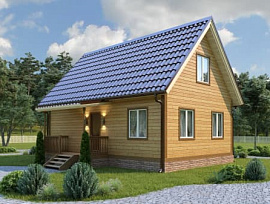 Размеры постройки составляют 6 x 6 кв. м при общей площади 64 кв. м. За счет этого дом имеет небольшую цену, но при этом обладает высокой эргономичностью, а также комфортен в эксплуатации. Коттедж имеет 2 этажа:
