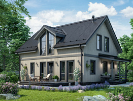 Компания «Канадская изба» предлагает уникальный проект, который органично вписывается в окружающий ландшафт. Это деревянный дом Австрийский (домокомплект из профилированного бруса). Под широкой крышей скрывается уютное внутреннее пространство.