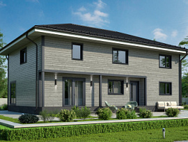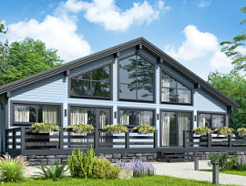 Дом производится из силового каркаса, состоящего из каркасной деревянной основы, утеплителя с толщиной в 10 см, а также вагонки. Окна деревянный, имитируют стеклопакет, обналичка – строганная доска. Лестница может быть одно- или двухмаршевой.