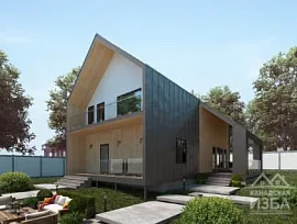 Проект каркасного дома «Медовый» – сочетает в себе уют традиционной русской архитектуры и современные технологии строительства, например, за счет опорно-столбчатого фундамента.