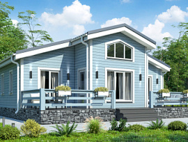 Каркасный дом размерами 9х9 полезной площадью 124,4 м², на 2 этаже расположена жилая мансарда с выходом на балкон. Лестница ведет в холл 1 этажа. Тамбур удобно отделяет санузел и котельную от жилых помещений. Стены из усиленного каркаса с утеплением, внутри и снаружи отделка из деревянной евровагонки. Проекты деревянных домов, например дачные дома из бруса 6х7 площади также могут быть просторными и уютными при должном утеплении.