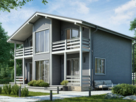Проект «Вельс» – это просторный (на 181 м2) двухэтажный дом. Он подойдет как дача, так и круглогодичного проживания, поскольку построен по каркасной технологии с утеплением в 100 м. Вы можете получить такой дом всего за 3 месяца с момента оформления заявки. Оригинальный внешний вид с отделкой вагонкой и большими окнами делают дом красивым, светлым.