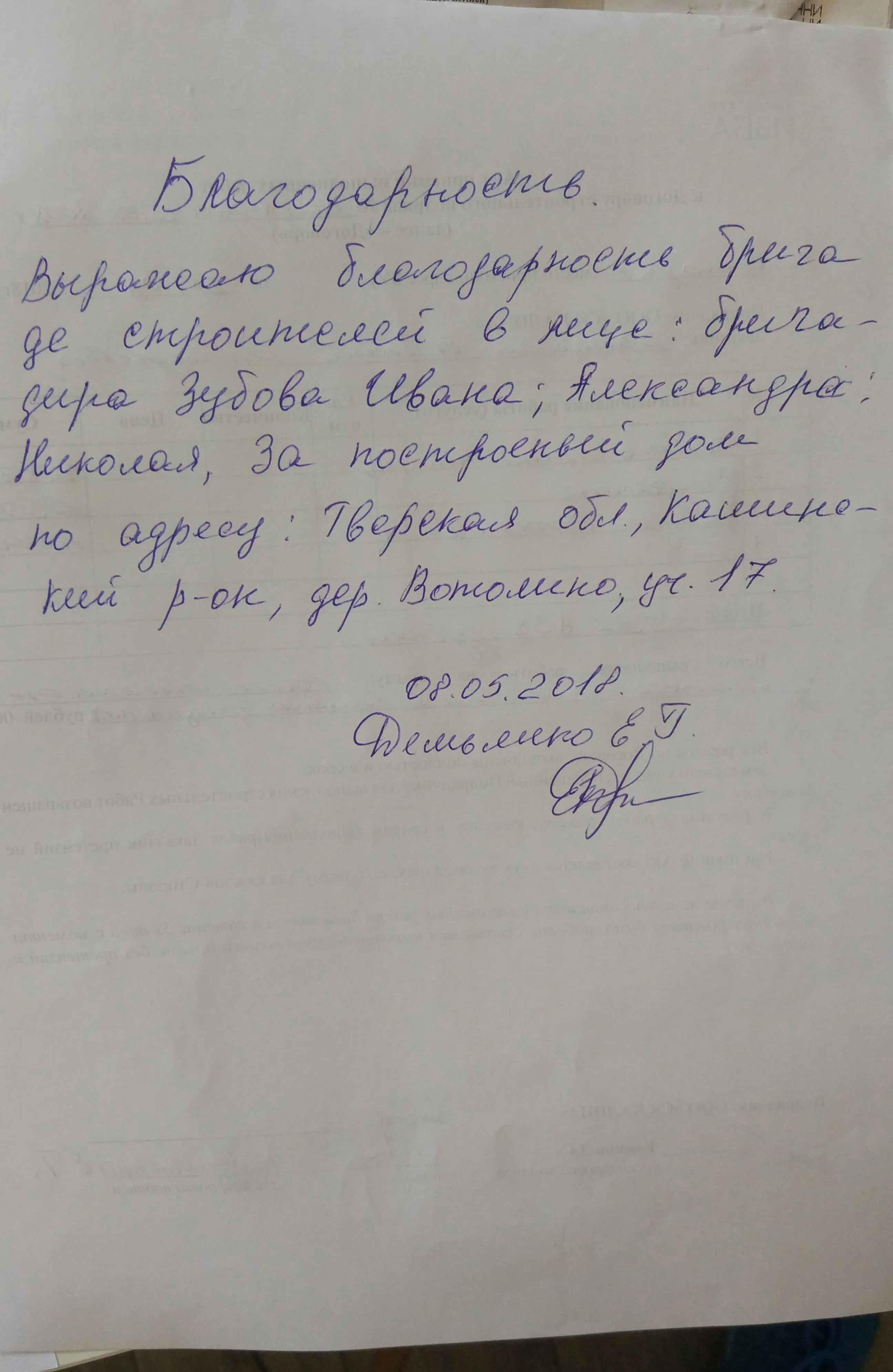 Отдельное спасибо прорабу Николаю Кустову за осуществление контроля строительства и коммуникации по вопросам, связанным со стройкой.