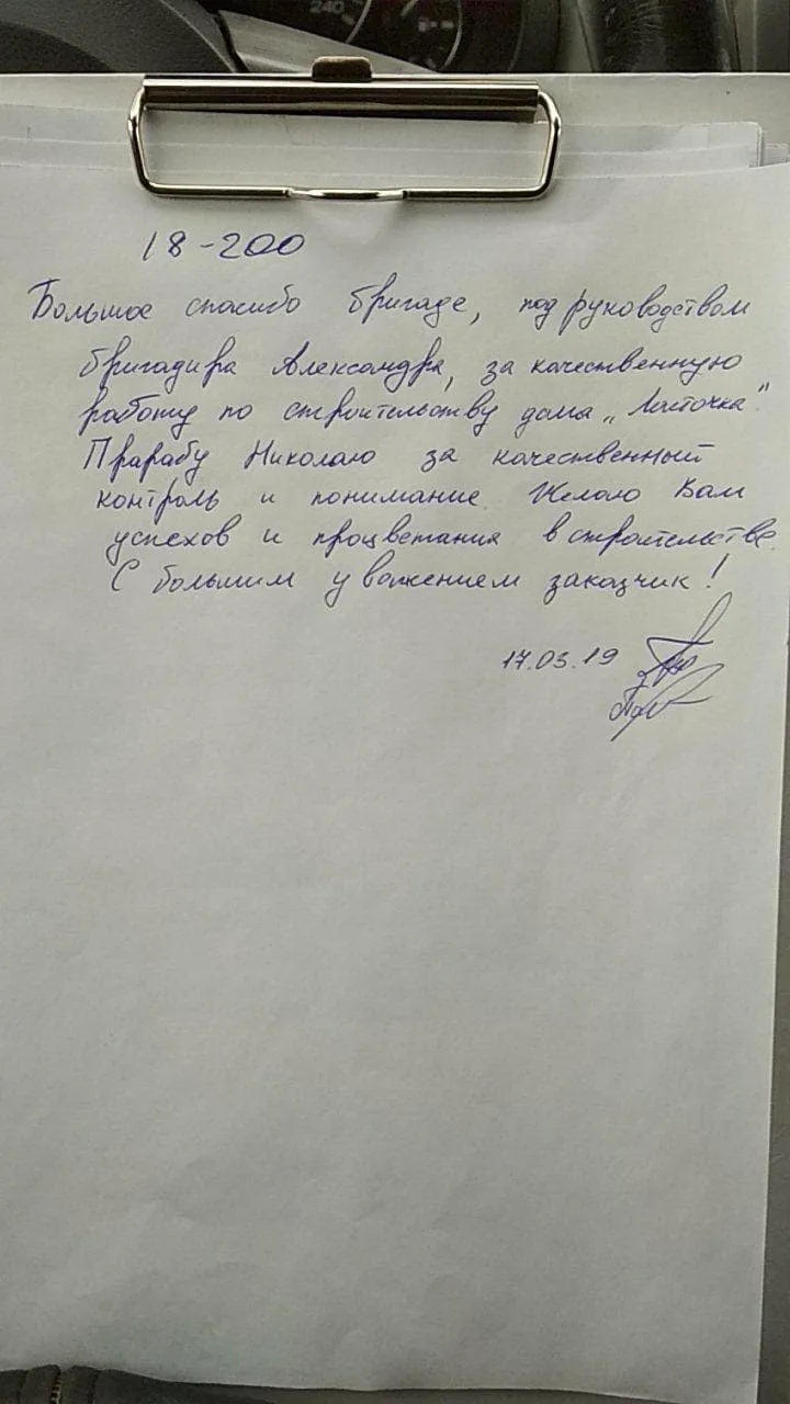 Прорабу Николаю за качественный контроль и понимание. Желаю Вам успехов и процветания в строительстве.